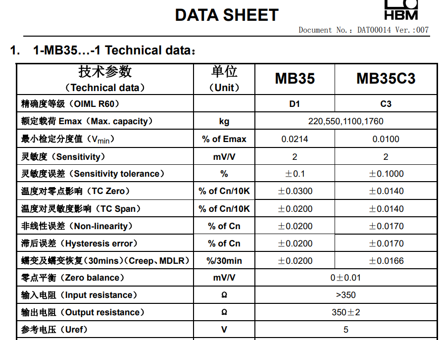 德國HBM稱重傳感器MB35C3/220kg產(chǎn)品技術(shù)參數(shù):rOA廣州南創(chuàng)電子科技有限公司