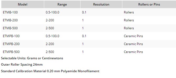 Complete Kit Tension Meter, Battery, Recharger, CD-Software, Transfer Cable & instructions, all supplied in a foam-fitted carrying case. all supplied in a foam-fitted carrying case.