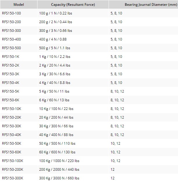 美國CHECKLINE_RFS150張力傳感器系列稱重傳感器所有量程如下:2QC廣州南創(chuàng)電子科技有限公司
