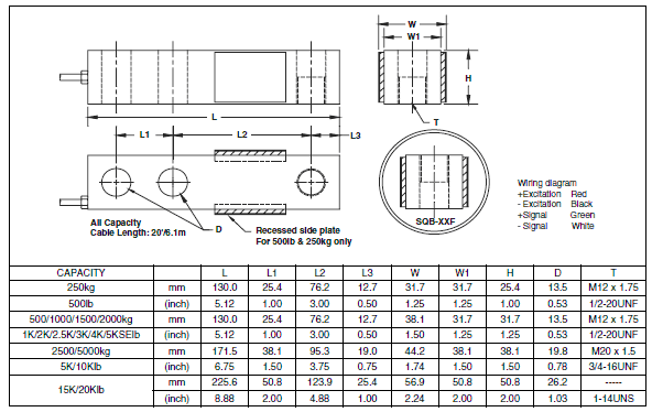 美國(guó)Celtron稱重傳感器SQB-1500KG是一種單端彎曲梁式稱重傳感器,主要用于低平面規(guī)?;蛐⌒拖涔?,SQB-1500KG傳感器安裝時(shí)需使用適當(dāng)?shù)陌惭b附件,不易受周圍影響,且負(fù)載能力強(qiáng)。SQB和SQB-F單端梁稱重傳感器材料為合金鋼,并用特殊化合物充分壓縮,SQB稱重傳感器有良好的防水防濕功能,美國(guó)Celtron稱重傳感器SQB-1500KG保護(hù)等級(jí)為IP67。Tus廣州南創(chuàng)電子科技有限公司