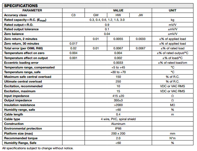 美國(guó)特迪亞tedea 1004稱重傳感器系列所有量程如下:zTG廣州南創(chuàng)電子科技有限公司