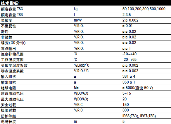 梅特勒托利多TSC系列稱重傳感器所有量程如下:b2O廣州南創(chuàng)電子科技有限公司