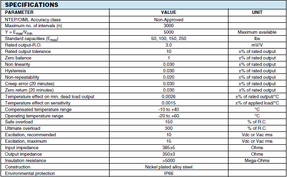 美國世銓Celtron MBB系列稱重傳感器所有量程如下: fNj廣州南創(chuàng)電子科技有限公司