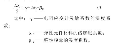 荷蘭 TNO 機(jī)械院推導(dǎo)出的稱重傳感器靈敏度溫度誤差表達(dá)式為: