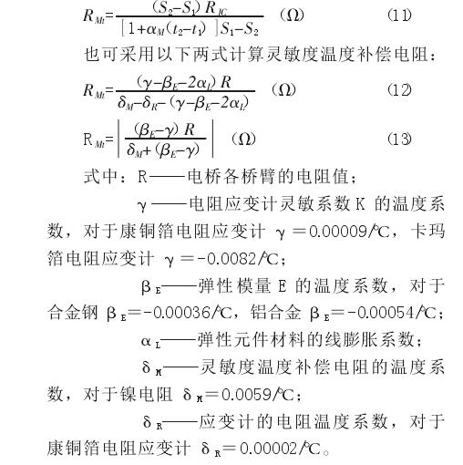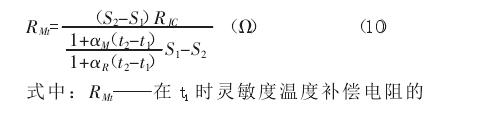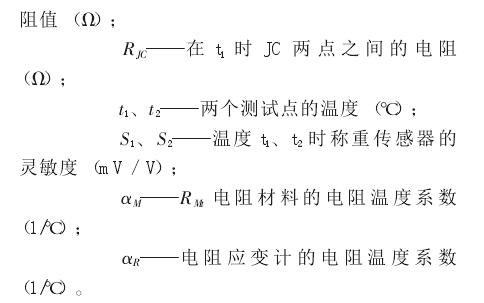 進(jìn)行靈敏度溫度補(bǔ)償時(shí),首先分別測(cè)量出溫度 t1和 t2時(shí)稱重傳感器的靈敏度 S1和 S2,然后應(yīng)用下列公式計(jì)算補(bǔ)償電阻 RMt