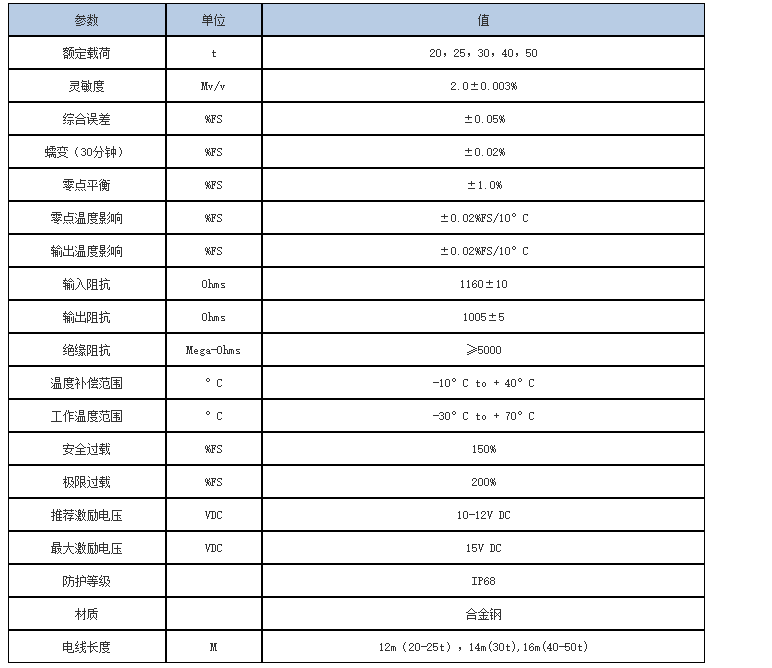 數(shù)字型柱式稱重傳感器技術(shù)參數(shù):FNx廣州南創(chuàng)電子科技有限公司