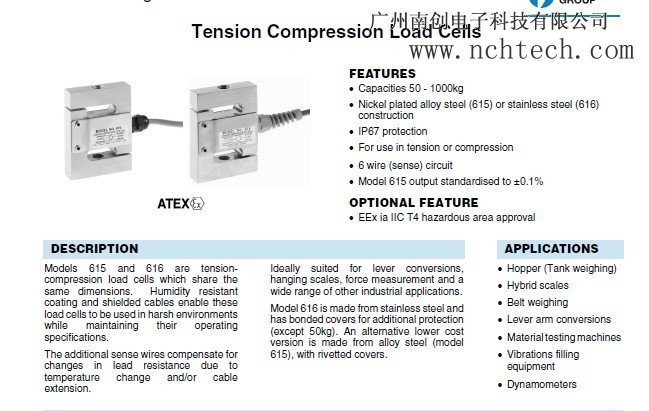 美國(guó)特迪亞tedea 615-750kg稱重傳感器特性:aeH廣州南創(chuàng)電子科技有限公司