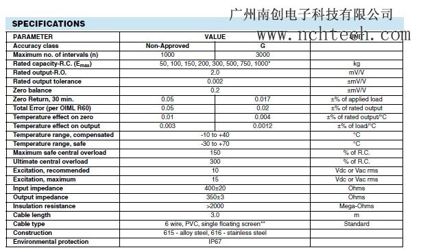 美國(guó)特迪亞tedea 615-750kg S型稱重傳感器各項(xiàng)技術(shù)指標(biāo):          aeH廣州南創(chuàng)電子科技有限公司