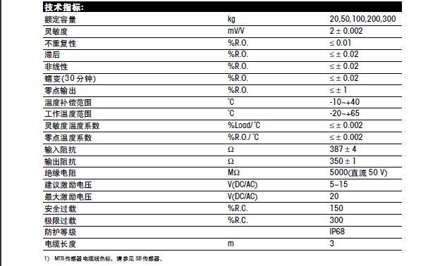 梅特勒托利多MTB-20 稱重傳感器技術(shù)指標(biāo):xSC廣州南創(chuàng)電子科技有限公司