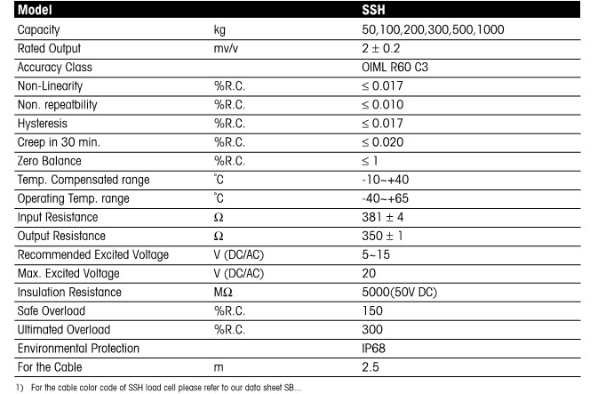 梅特勒托利多SSH-300稱重傳感器技術指標: