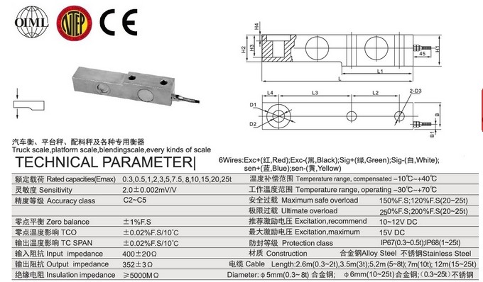 具有良好的抗偏載、抗過載能力,性能穩(wěn)定,安裝方便,適合各種準確度等級要求的試驗機及測力系統(tǒng)。