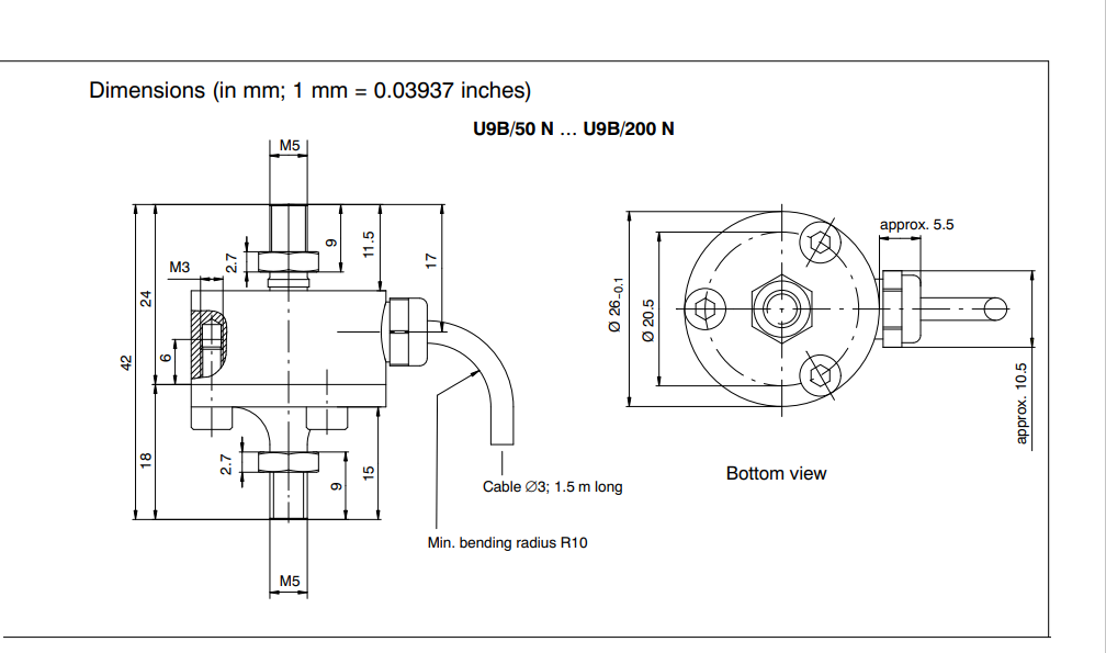 HBM U9B力傳感器尺寸圖: