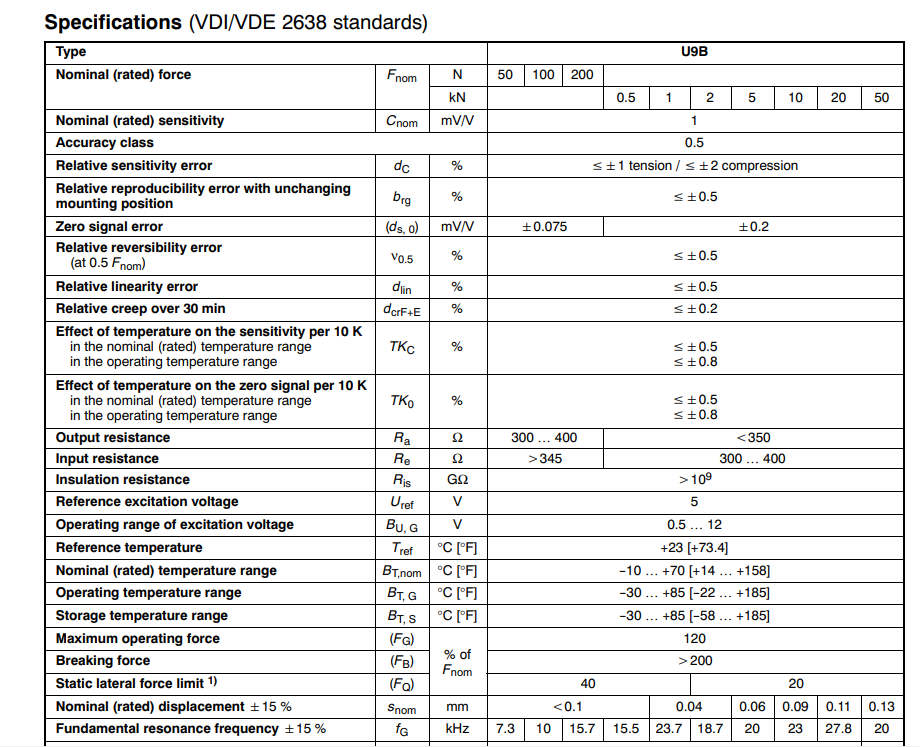 HBM U9B力傳感器技術(shù)參數(shù)圖: