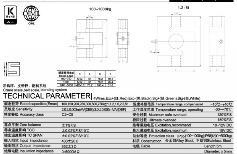 柯力DEF-A-250KG傳感器測量精度:±2.0%(常用點校準(zhǔn)后誤差可小于0.05%),±0.3℃LCo廣州南創(chuàng)電子科技有限公司
