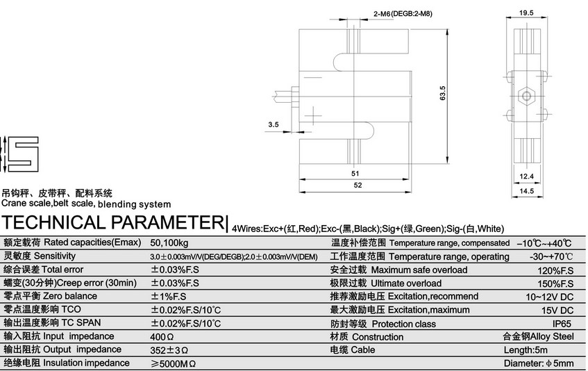 DEGB-100KG稱重傳感器安全過載能力:150%;Uvi廣州南創(chuàng)電子科技有限公司