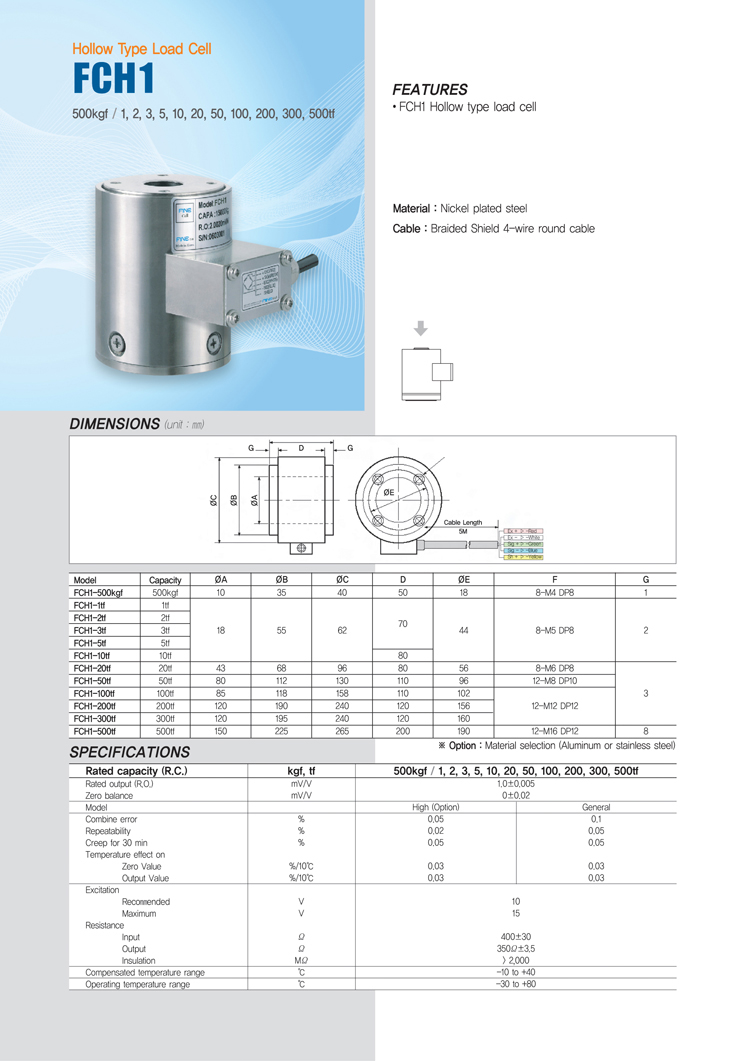 韓國Fine稱重傳感器 FCH1-200T型號其它相似型號:lHw廣州南創(chuàng)電子科技有限公司