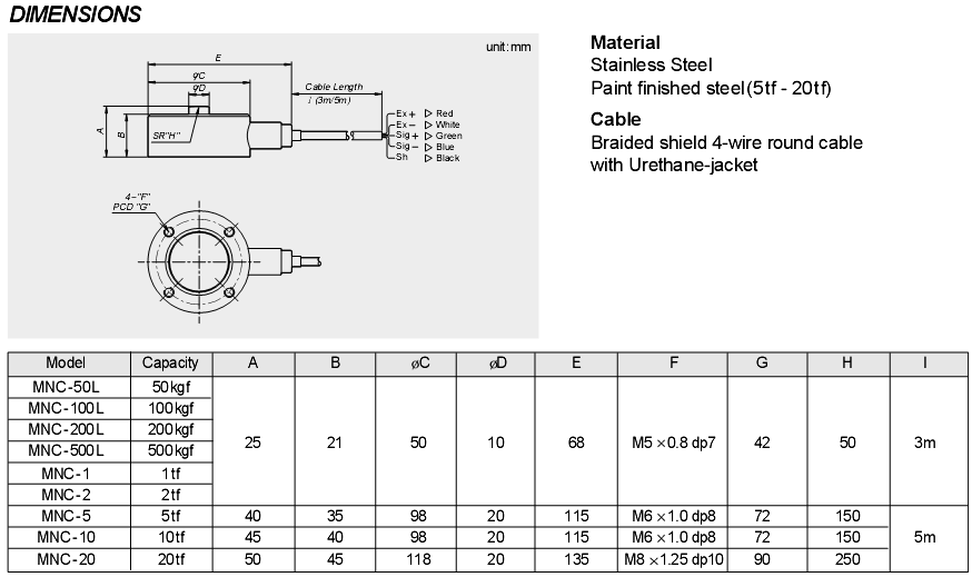 MNC-50L輸出值(Output value)50,100,200,500,2 T 1T F,F(xiàn),F(xiàn) 5 T,10 T,20 T F