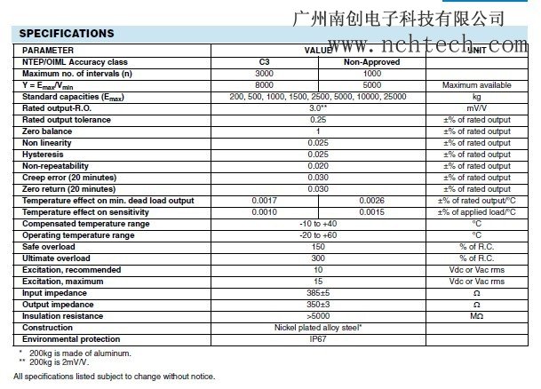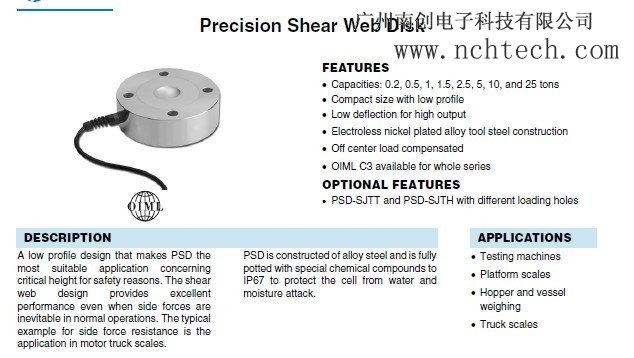 美國世銓PSD-10t稱重傳感器技術(shù)參數(shù)8fw廣州南創(chuàng)電子科技有限公司