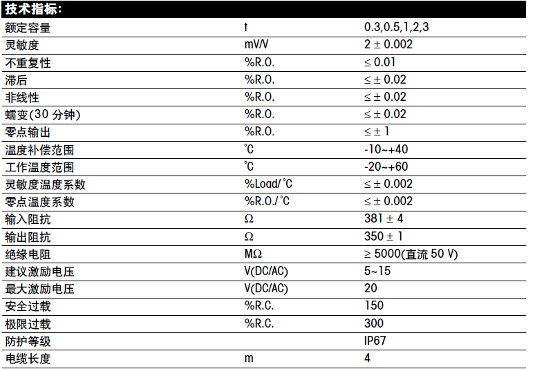 Transcell SBS-7.5T稱重傳感器的防護(hù)等級(jí)為IP67bR0廣州南創(chuàng)電子科技有限公司