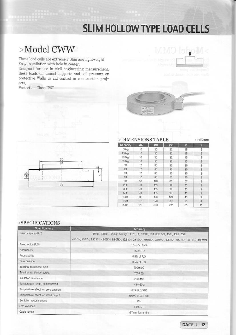 Dacell CWW 稱重傳感器其它相關產品型號: