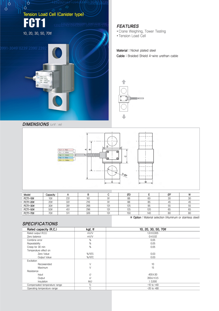 韓國Fine FCT1-10T稱重傳感器參數(shù):7So廣州南創(chuàng)電子科技有限公司