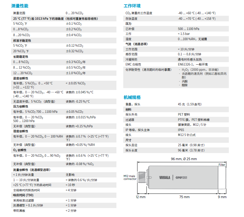 維薩拉(CARBOCAP)二氧化碳探頭 GMP251