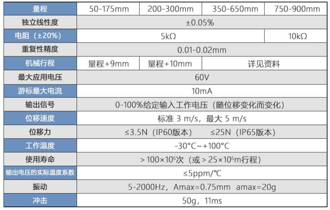 杰佛倫拉桿式直線位移傳感器技術(shù)參數(shù)圖:Kfz廣州南創(chuàng)電子科技有限公司