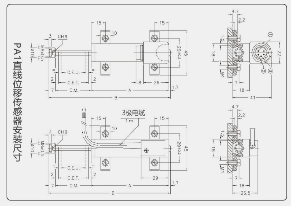 杰佛倫gefran電子尺PA1-C-075-XL0202 PA1-F-100-S01M-XL0202尺寸圖:INp廣州南創(chuàng)電子科技有限公司