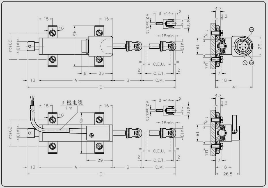 SIN-D、SIN-W自復(fù)位直線位移傳感器(別名:電子尺,電阻尺,電位器,位移傳感器)原理:電位計(jì)原理,傳感器采用側(cè)面雙向控制通桿結(jié)構(gòu),整體強(qiáng)度更高。測桿通過復(fù)位彈簧自動復(fù)位,適用于各種對比測量。輸出直流電壓信號,也可以通過內(nèi)置或者外置的變送模塊講信號轉(zhuǎn)換成標(biāo)準(zhǔn)的0-5V、0-10V或者4-20mA直流信號,也可以遠(yuǎn)距離傳輸控制要求。1ZU廣州南創(chuàng)電子科技有限公司
