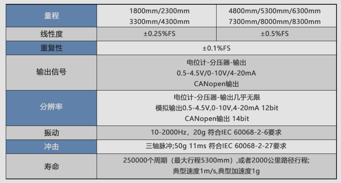 TM1廣州南創(chuàng)電子科技有限公司杰佛倫拉繩式位移傳感器GSFSMS1800LA0 GSFSMS3300LA0相關(guān)特點(diǎn): TM1廣州南創(chuàng)電子科技有限公司GSF拉繩位移傳感器采用滑線電位計(jì)技術(shù)的線性傳感器。具備出色的可重復(fù)性、高IP防護(hù)等級、高抗沖擊性和高抗振性以及高電磁兼容性,該傳感器適用于移動(dòng)液壓應(yīng)用??蔀檗r(nóng)機(jī)設(shè)備、土方工程機(jī)械、起重設(shè)備等應(yīng)用提供穩(wěn)定、高性能的解決方案。