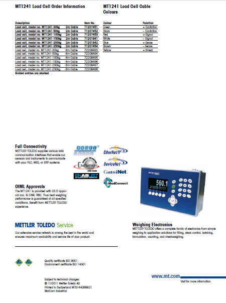 瑞士梅特勒托利多MT1241-30kg稱重傳感器產(chǎn)品技術(shù)參數(shù)圖:Xci廣州南創(chuàng)電子科技有限公司