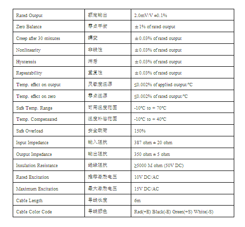 美國Transcell BSS-ESH-750kg稱重傳感器技術(shù)參數(shù)圖: