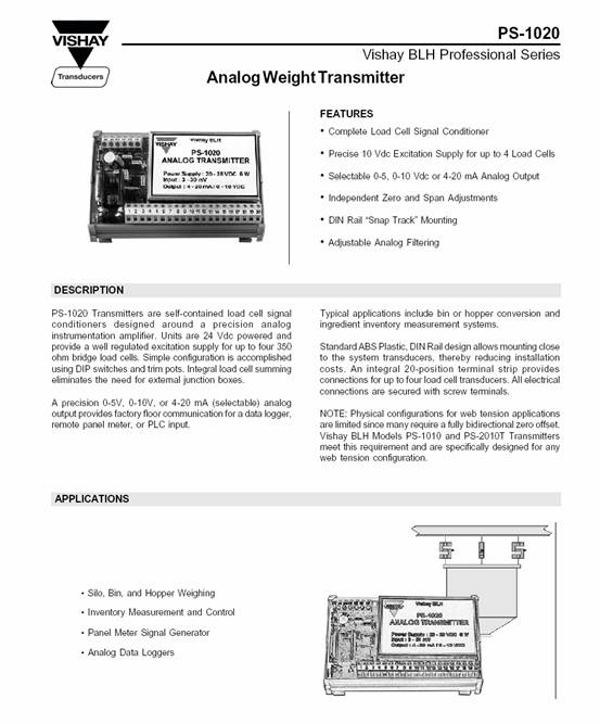 美國BLH PS-1020稱重傳感器技術(shù)參數(shù)圖:ZwA廣州南創(chuàng)電子科技有限公司