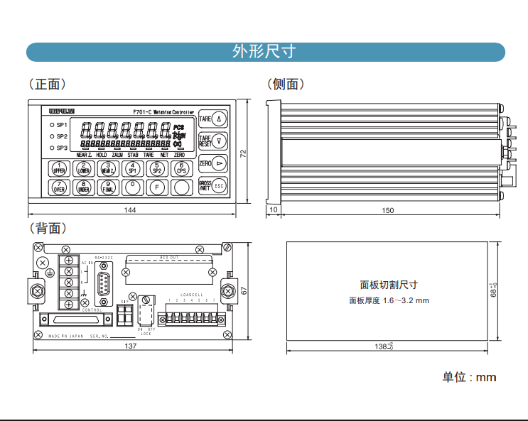 日本尤尼帕斯稱(chēng)重儀表F701技術(shù)參數(shù):2dK廣州南創(chuàng)電子科技有限公司