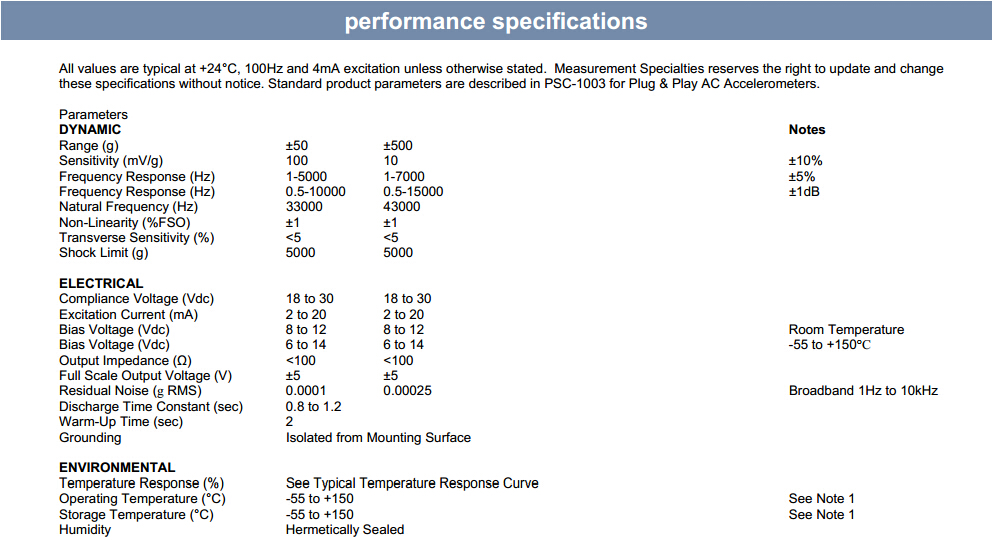 美國(guó)MEAS 7100A系列加速度計(jì)性能規(guī)格圖:Dkp廣州南創(chuàng)電子科技有限公司