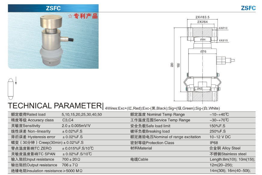 寧波柯力稱(chēng)重傳感器ZSFC-(5t/10t/15t/20t/25t/30t/40t/50t)