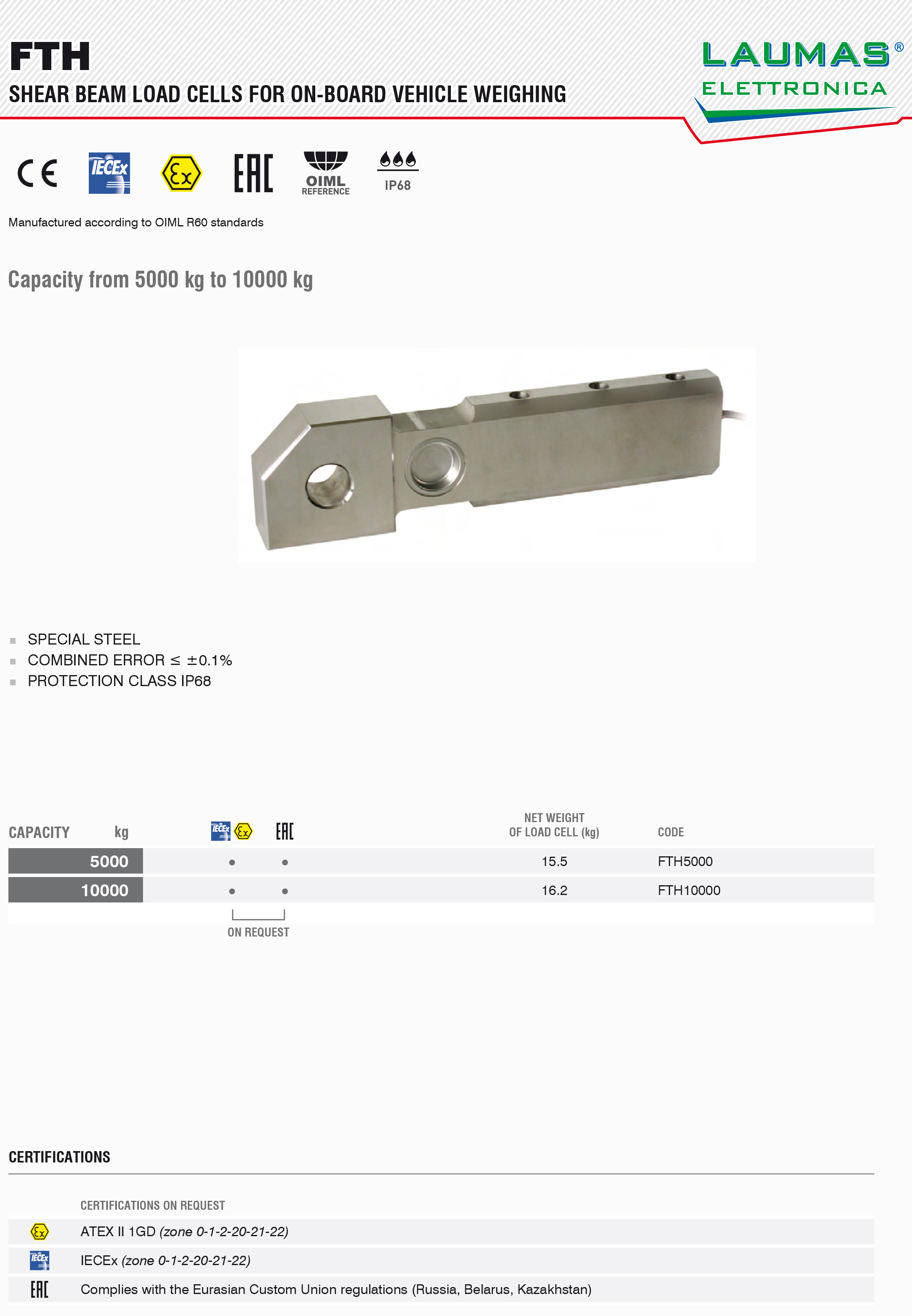 FTH-10000Kg剪切梁式稱重傳感器_意大利Laumas