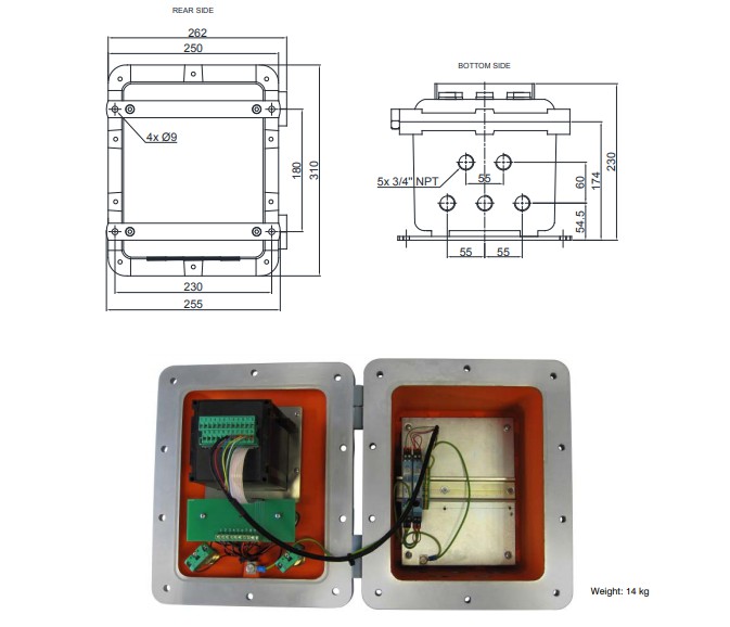 防爆箱,已通過ATEX II 2(1)GD認(rèn)證,配有耐熱透明鋼化玻璃窗和5個(gè)外部按鈕,其功能與W200鍵盤相同yMV廣州南創(chuàng)電子科技有限公司