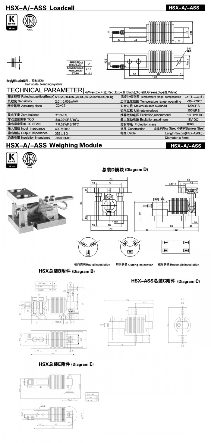 1.HSX-A/-ASS稱重傳感器(適用于料斗秤、皮帶秤、配料系統(tǒng))