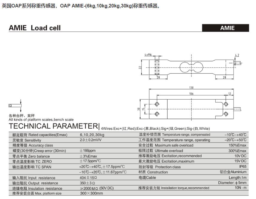 量程:AMIE-6kg、AMIE-10kg、AMIE-20kg、AMIE-30kg    yRh廣州南創(chuàng)電子科技有限公司