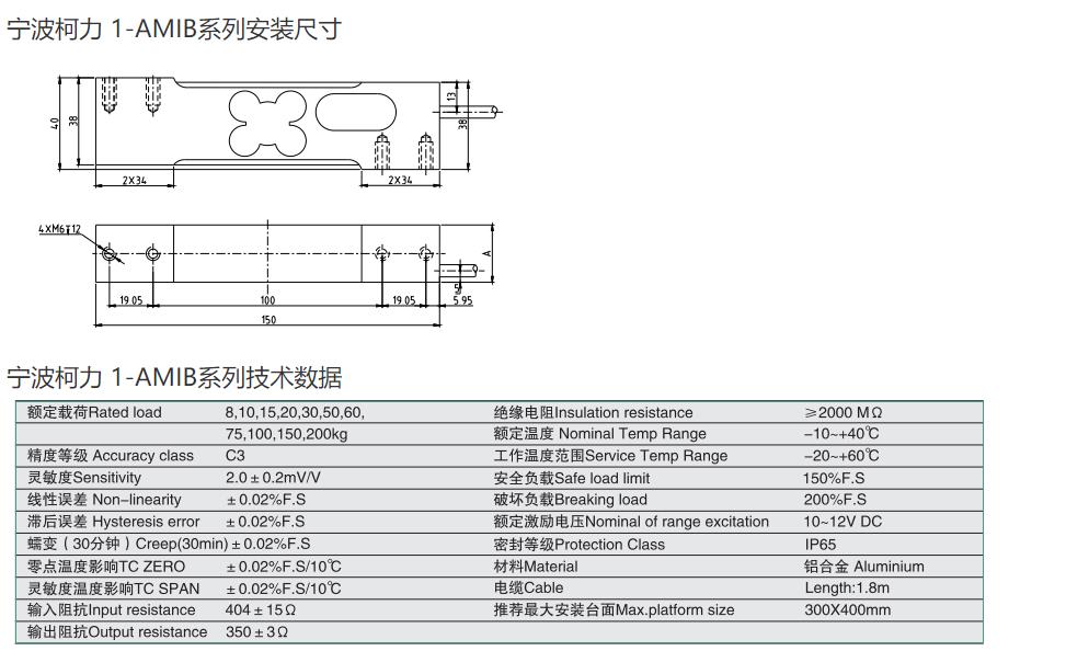 寧波柯力稱重傳感器AMIB-200kg產(chǎn)品技術(shù)參數(shù)及尺寸圖:5qx廣州南創(chuàng)電子科技有限公司