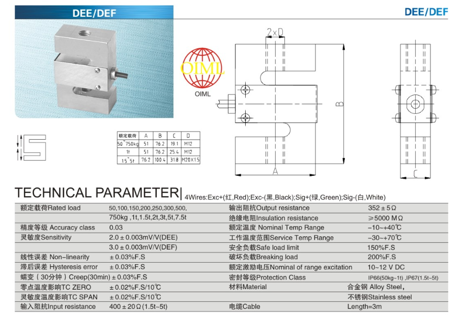 寧波柯力稱重傳感器DEE-750kg產(chǎn)品技術(shù)參數(shù)及尺寸圖:fnG廣州南創(chuàng)電子科技有限公司
