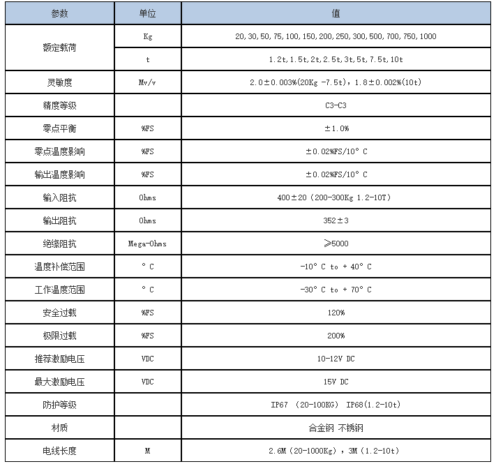 量程可選:20Kg 30kg 50kg 75kg 100kg 150kg 200kg 250kg 300kg 500kg 700kg 1t 1.2t 1.5t 2t 2.5t 3t 5t 7.5t 10t 750kg hLv廣州南創(chuàng)電子科技有限公司