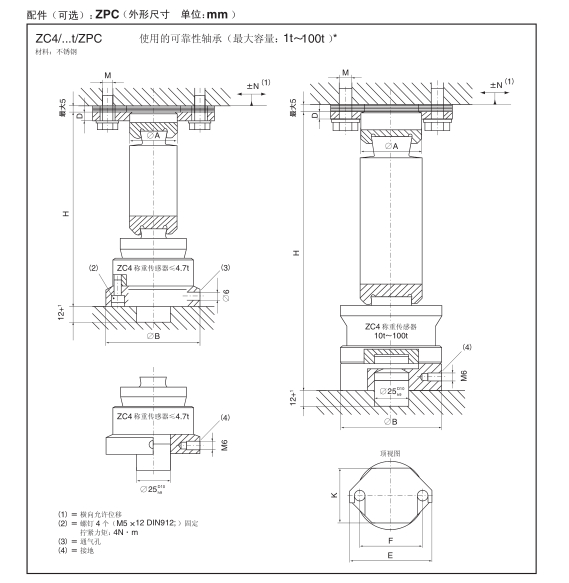 美國(guó)NCH稱重傳感器ZC4-100T規(guī)格: