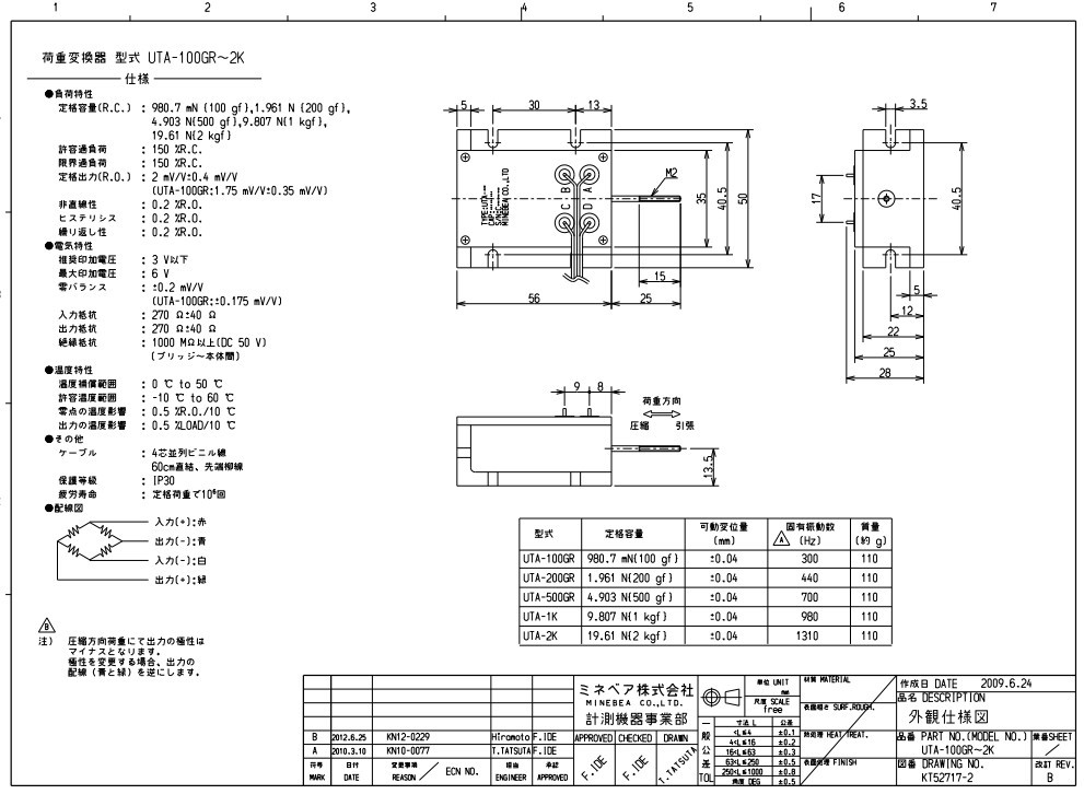 (UT-100GR:±1.75 mV/V±0.35 mV/V以上)