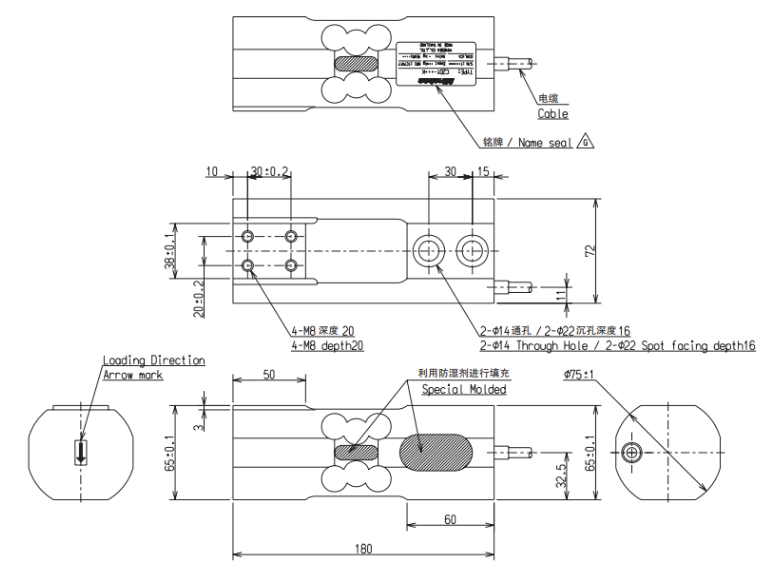 C2D1-120K稱重傳感器Minebea尺寸圖:4Va廣州南創(chuàng)電子科技有限公司