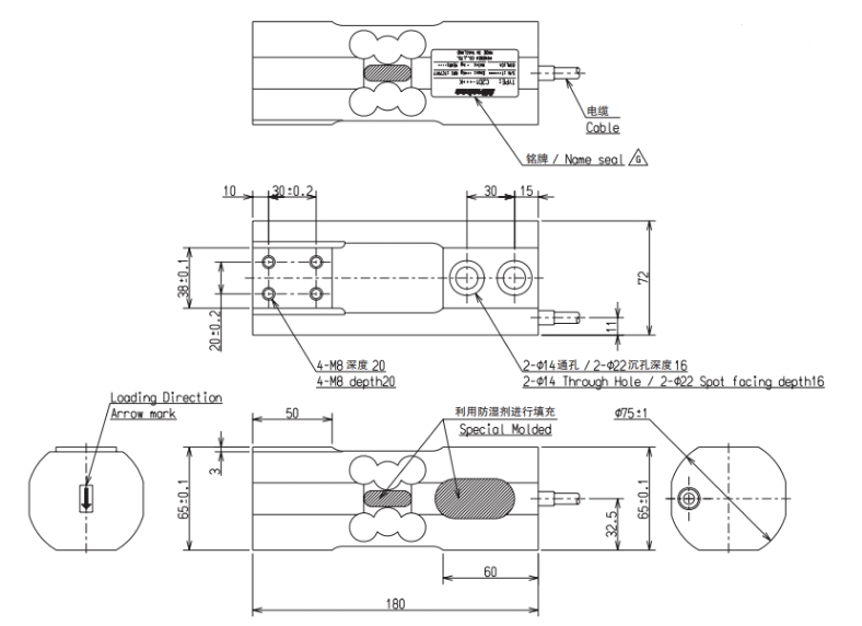 U2D1-10K稱重傳感器Minebea尺寸圖:Grf廣州南創(chuàng)電子科技有限公司