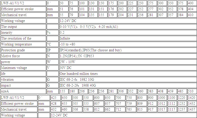 德國VOLFA LWF系列直線位位移傳感器參數(shù)圖: