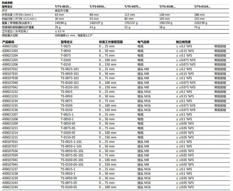 諾沃泰克TS-0075直線位移傳感器相關(guān)型號詞: