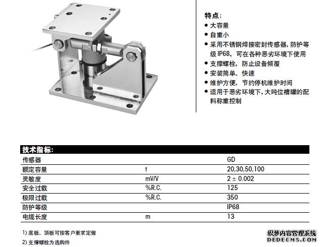 搖柱式傳感器:GD-15 、GD-20 、GD-30 、GD-50、 GD-100 、GD-200、 GD-250 、GD-300 GD-400 、GD-500y0T廣州南創(chuàng)電子科技有限公司